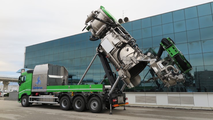 El Cerberus está diseñado para realizar operaciones de aspiración de alto rendimiento y no deja lugar a compromisos, independientemente de si se utiliza como unidad de aspiración en seco o en húmedo o como excavadora de aspiración. El sistema de aspiración incorpora soplantes de alto vacío con un caudal de aire que va desde los 6000 m3/h hasta un nivel máximo de 16500 m3/h con un vacío máximo del 93%.