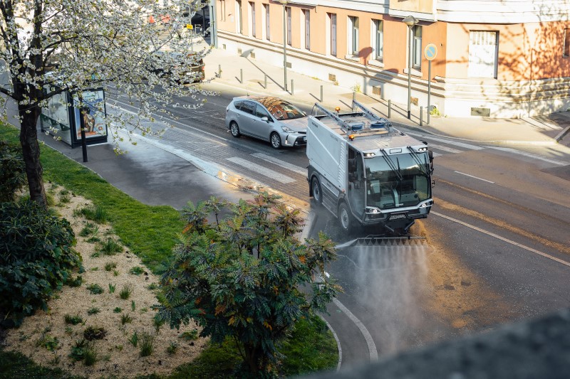 Disponible las 24 horas del día, la lavaceras eléctrica con un volumen de agua de hasta 5000 l y un peso bruto de 10,5 t ofrece una capacidad de carga óptima para un rendimiento de lavado excepcional y al mismo tiempo es respetuosa con el medio ambiente.